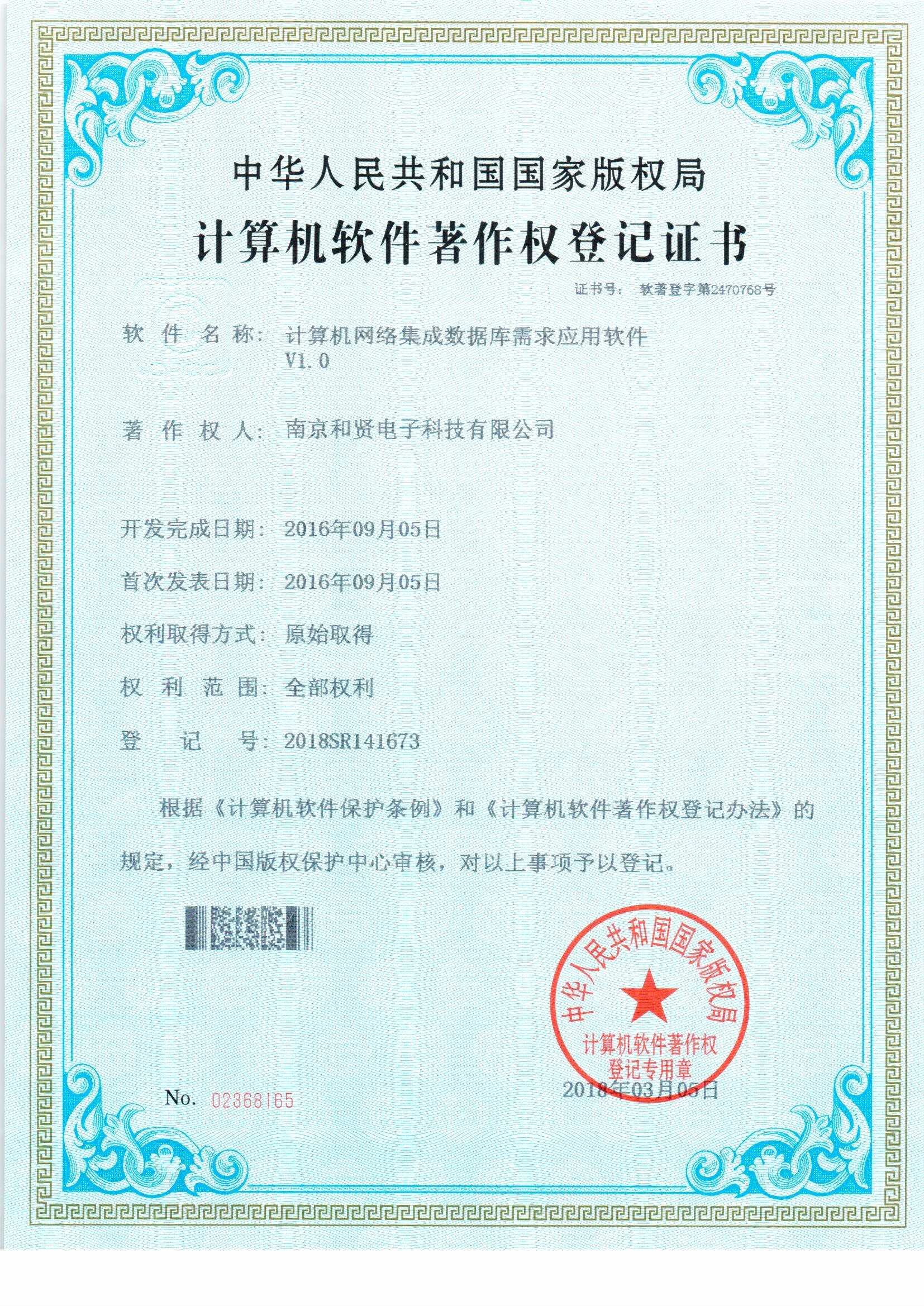 南京和贤电子科技有限公司成立于2015年,注册资金5550万,旗下设有3家子公司,年销售额逾1亿元人民币.拥有弱电施工二级、计算机系统集成三级等各项资质。是一家专业的IT产品增值业务供应商和系统集成项目服务商,为各级政府部门及不同行业的用户提供系统集成的设计、安装、调试、维护、服务,符合其个性需要的系统解决方案。 和贤公司已携手IBM、EMC、阿里、联想、戴尔、锐捷、深信服、天融信等国际国内的优秀产品厂商在智能网络、人工智能、..